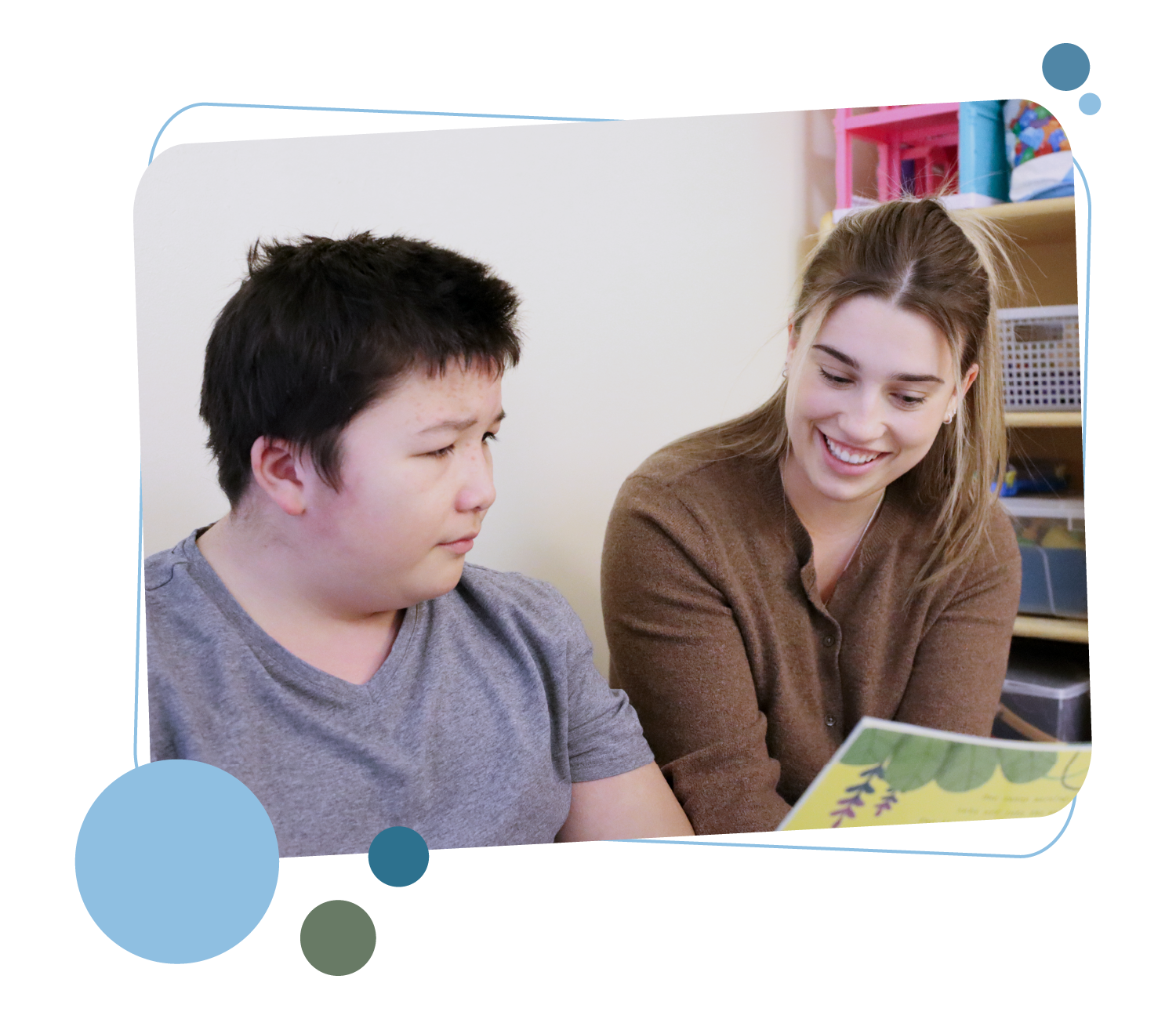 Depending on a client’s goals, sessions can occur in various locations. They can be in a classroom, in a one-to-one environment, or out in the community.