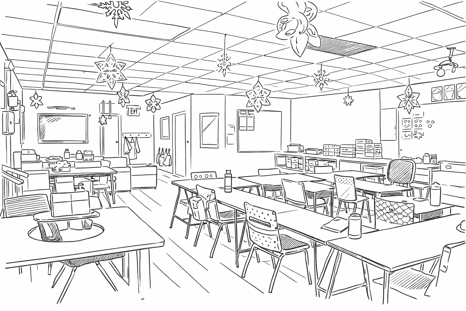 Desk Zone: strategically shaped in a “u” shape, this area is the designated working location for clients to develop their academic skills.